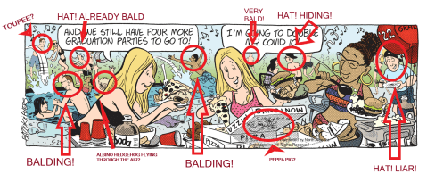 I mean, I guess he’s tall. And next to cowlick Connor and certified Michelin Manlet Bernie, he’s okay looking. Yeah, he’s got a receding hairline, but what fresh-faced Westview teen doesn’t have one? I mean just look the crowd at that graduation party you went to!
