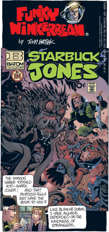 Yikes, by the third panel I was expecting it to start raining pizza. Starbuck Jones, the obscure and unpopular comic book with hundreds of issues that EVERYONE is talking about. Sigh. TB obviously couldn’t help himself here, much like I couldn’t help myself with today’s post title. Had to use it as it might be Mason’s last appearance…unless…no, I don’t even want to think about that possibility right now.