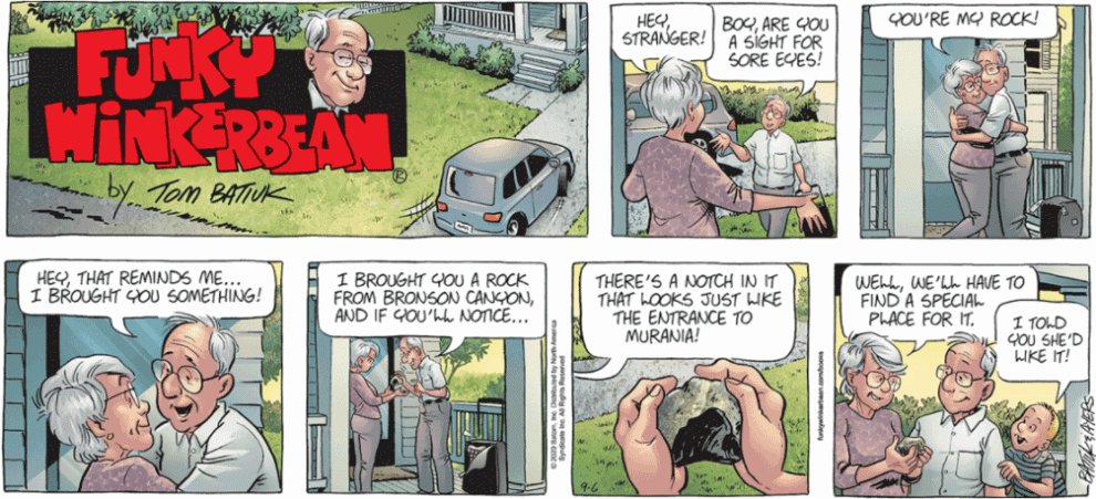 Today’s strip is all about the numbers for me… and not just the zip code of “Boston, Mass”. We’ve got 3 faculty on stage here, which is what… half of WHS’ known paid staff these days (along with Les, Cayla, and Lefty)? Of course, maybe you only need 4 teachers, 2 administrators, and a Dinkle when you only have 16 students in your senior class. To be fair, only nerds would show up for a school assembly during the last weeks of their senior year, so maybe these are just all the nerds (that would explain why Maris Rogers is having to plan on crashing graduation parties instead of hosting them).