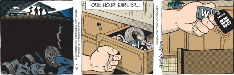 We left yesterday an hour in the past and now today’s strip hops back to the present and then… back a week?! I dunno about CTE, but this kind of rapid time travel is enough to give you whiplash.