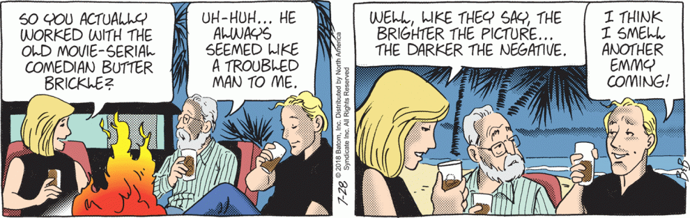 Tom Batiuk is a 14 year old. Because he clearly seems to think smoking and drinking makes you a badass, which I’m pretty sure that stopped being a thing in high school. A literal 14 year old boy writing this strip would explain why it’s so fixated on comics and has such a creepy portrayal of the female characters. Also, teaching an animal to smoke and drink isn’t awesome, it’s abuse.