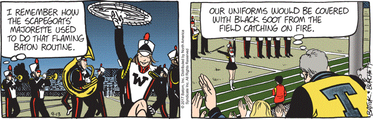 Try saying “Twirling Tots” five times fast, I dare ya! Holly has settled into her ponderous pandemic picture project and is actually enjoying a little quality mother-daughter time. I don’t think I noticed until just this week that Melinda is drawn with the same weird, wide cartoony eyes that Holly had in her majorette days, and even when she was still a “Tot.”