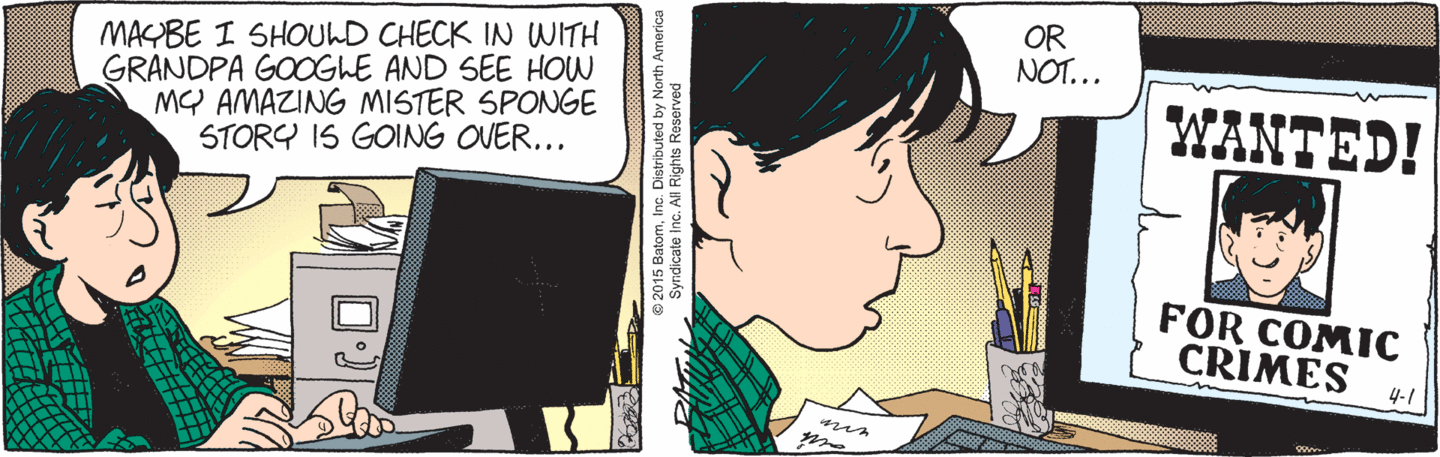 Hey gang, TFH popping in…today’s strip wasn’t available for preview, but it’s probably about Mr. Sponge’s clone and it probably sucks. I just wanted to give the readers a heads up that April 9th marks the fifth anniversary of Son of Stuck Funky. Stay tuned for some kind of fun contest announcement to win a very mediocre prize! Thanks for reading and stay Funky!