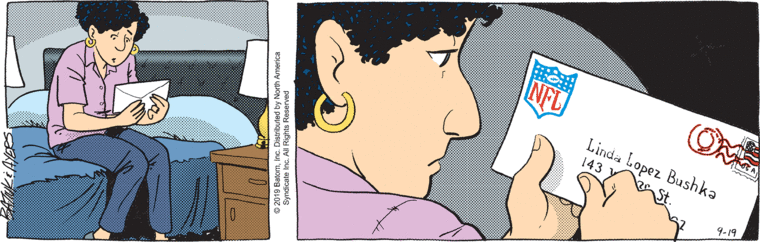 On top of that, it was a waste of a potentially good story. The NFL has been accused of dragging its feet about meeting its obligations to former players who were found to have CTE. And these stories were at a peak from 2018-19. Funky Winkerbean could have told a powerful story about how one man suffered, when the NFL failed to fulfill its promises. This is what Tom Batiuk did with it. He spent a week watching someone open their mail, then dropped it entirely. Then he had Linda say Bull wasn’t eligible because he was only on the practice squad, which (a) defeats the purpose of her applying for it in the first place, and (b) isn’t true.