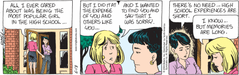 I’ve complained about it before. I will complain about it again. But the hollow sameness of every character cripples this strip in ways I don’t think Batiuk realizes. You ever buy a danish, or a jelly doughnut, and when you bite into it you realize that all the filling has been baked out? That’s an Act III Funky Winkerbean character. Bland, flakey, overcooked yet doughy. And completely empty inside.
