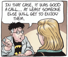 It’s been a long time since I laughed out loud at Funky Winkerbean, but Les’ question in today’s strip cracked. Me. Up. It’s been ten whole years since Les and Cayla dropped off Summer and Keisha at Kent State. Even for someone doing “graduate work,” ten years is a stretch. Is she still on a basketball scholarship? I don’t recall even seeing her in a Kent State uniform. So has Les been paying her tuition? I doubt Summer is contributing anything, as the only job we’ve seen her doing is wrapping gifts at the mall two years ago (when the girls were “wrapping up [their] college careers,” according to Cayla).
