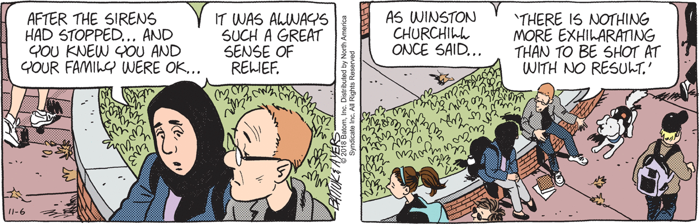 One bad turn deserves another, I suppose. Today’s strip sees Les take his revenge on Funky for two strips’ worth of Crankshaft schtick with some ‘Shaft-level quote muddle-ment of his own. Where did you pull this piece of unwisdom from, Les, I Chong?