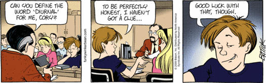 It is not really fair for me to question the comparison of a military briefing to first day of an unidentified community college class as in today’s strip. While I have my suspicions about how appropriate the comparison is, I have only experienced the latter situation.
