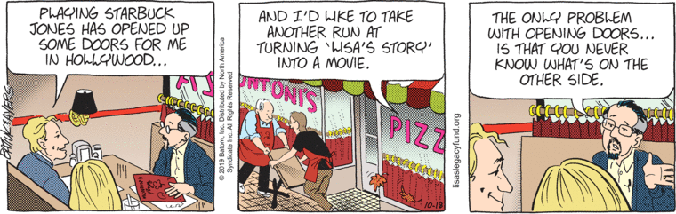 I had no idea playing the lead in one (or is two now?) sci-fi movies opens enough doors for you where you can just create movies by yourself. And this is another in the long tradition of Batiuk using “witty” or “funny” sayings that really make no sense, apart from not being funny at all. The doors are already opened, Les. I don’t think it matters what’s on the other side.