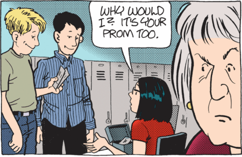 So many of you yesterday were baffled at the nothingness of this week. You figured, maybe hoped, that after Malcolm and Logan’s embarrassing date, that they would slide down the memory hole and out of this strip forever.