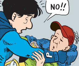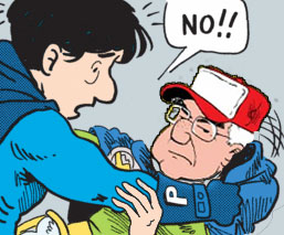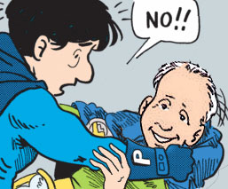 Let’s also leave aside the charming picture of Pete furiously picking his nose in the penultimate panel. And let’s leave aside what is going on with the hand in panel four (first one on the bottom).