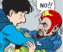 Instead, I have to wonder–has Tom Batiuk ever read a comic book? Because Super Villain Rule Number One is that you have to bedevil your designated hero at every opportunity. Saying “I’ll let the internet be mean to him” is just not done. Imagine the Joker refusing to plot against Batman because he notices the Batmobile parked in a loading zone or something, and is just giddy at the idea of Batman getting a traffic ticket. I mean, why is the Joker even there if he’s not going to act?