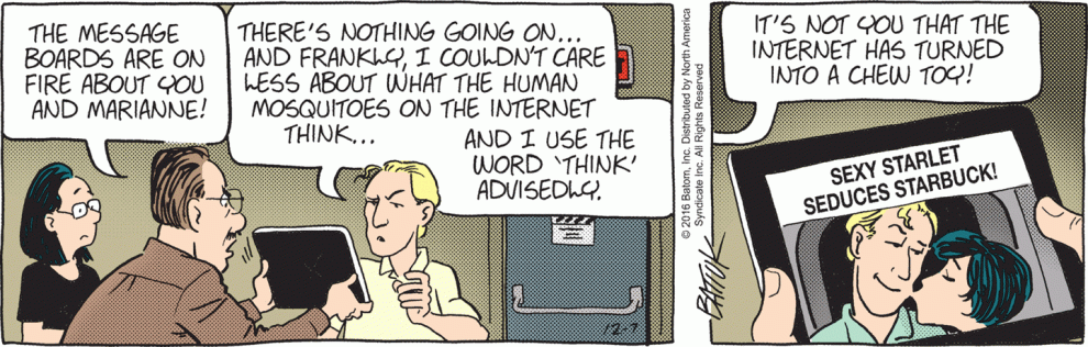 The wavy bordered third panels continue in today’s strip, and they surely must be representing a dream, because what is happening is practically impossible.