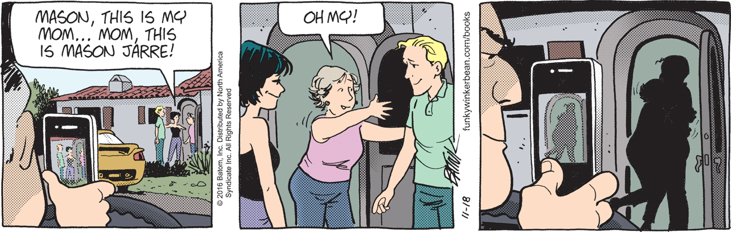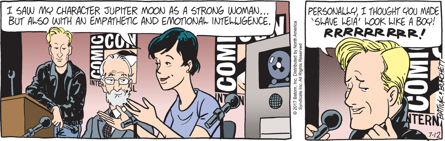 Quite the crowd on hand in today’s strip, with the first panel serving as the Batiukverse equivalent of the semi-famous crowd reaction photo from the 2017 Academy Awards’ wrong envelope incident. While the crowd of stars watching Marianne are not quite of the same wattage as those in the 2017 audience, I still spy some big names.