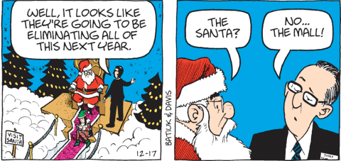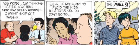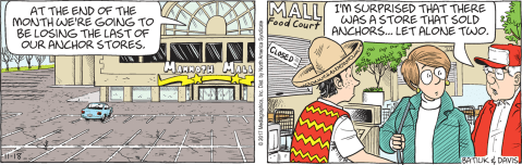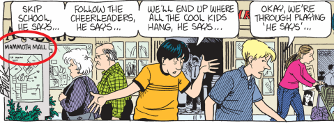 Thanks to strips the glorious Batiukstorian, Billy The Skink, dug up last week, we know at some point there was a Westview Mall. At least at the time of Les and Cindy’s graduation. Which surprises me because Westview doesn’t seem like a big enough town to support a thriving mall. Especially now that malls everywhere are dying a slow agonizing death.