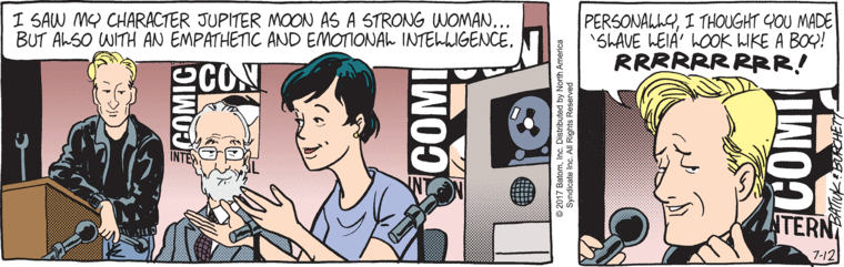 Marianne does NOT look like someone who is willing to give away her Oscar in the first today’s strip. No, she’s looking at that Oscar the way most characters in this strip look at comic books.
