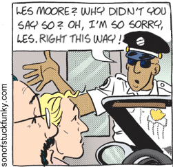 Shit. We’re back in “Hollywoodland.” Why is Mason so hellbent on casting Marianne Winters as Lisa Moore? For that matter, why is making this movie so important to him? What’s behind his strategy to get Les on board with casting Marianne by inviting other actresses to read for her role? It’s not enough for Tom Batiuk to reprise and rehash the whole Les Goes to Hollywood thing, but this time Les is even pissier and all Mason does is fly him back and forth to the coast, take him to lunch at the Chateau Marmot, and kowtow to his every whine. Stop lathering Les’ ass for God’s sake, Jarre!