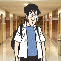 Well, yes and no. Look at the scoreboard in panel 1: it’s 43–0 visitors with five seconds to go (presumably in the fourth quarter, but versus these Scapegoats, it could be the end of the half). Time for some “street ball”! But if a play’s been called in the huddle, why does number 12 appear confused when Jarod fakes the handoff? And while Jarod’s preternatural passing skills earned him the QB spot, look like Batiuk’s gonna have him run it in for the score. Hell, why not just have J-Rod throw a touchdown pass to himself?