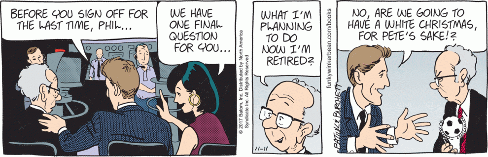 Phil is implored to give the viewers one more forecast in today’s strip, a forecast so far out that even a good meteorologist would just be guessing.