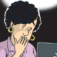 “And then I asked my cognitively impaired husband for a bite. So he bit me! (rimshot)”. Apparently Linda’s online support group is all about one-upmanship and exchanging daffy anecdotes about who’s got it worse. Sounds real helpful. No wonder she’s so miserable all the time, even her “my husband is so cognitively impaired…” gags aren’t that good. Leave it to Linda to find the wryest support group on the internet. In any other support group she’d undoubtedly be the wryest by far, but not this one.