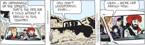 They return to the city to find that the Afghan family that’d helped Wally escape from Kahn before had exploded in a car bomb attack, leaving only Rana, the orphan Becky and Wally immediately decided to adopt.