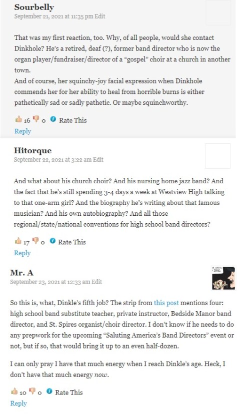 Funky Winkerbean thinks it’s a realistic comic strip. But no wife would accept being ostracized from family activities, or being made to accept ridiculous monuments to ex-wives. Cayla has already been way too indulgent of Les’ inability to move past Lisa’s death. In the Lisa’s Story era, you could argue that she was putting aside her feelings to support his work. But that justification doesn’t exist anymore. Lisa’s Story is over. And despite being Les getting an Oscar-winning movie made to his exact specifications, he still can’t move on. Now he needs a pizza sign because it reminds him of Lisa.