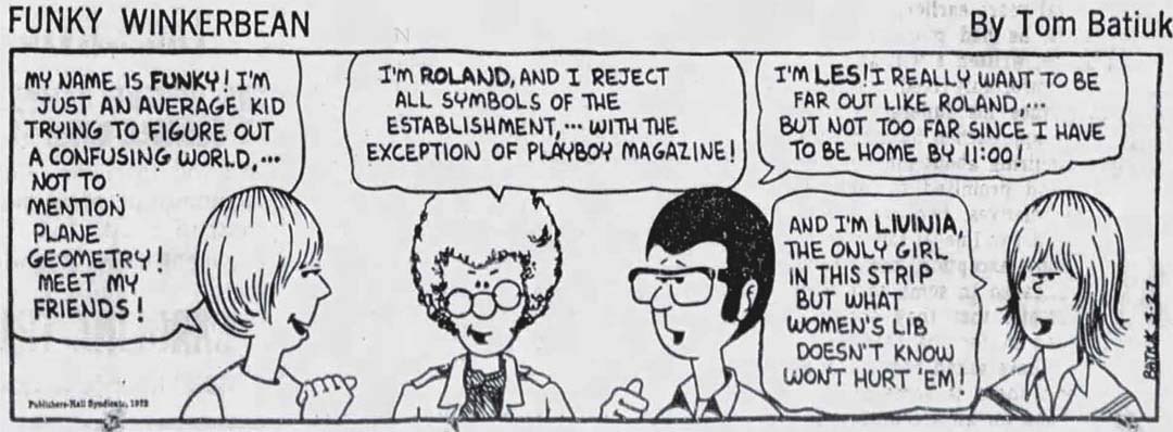 We can breathe easier knowing that getting together with coworkers to watch porn in the office after work probably isn’t something that happened even in the pre- “Women’s Lib” real world. It was merely a premise to set up Ruby’s little joke on the guys. Ruby’s smug smirk bugs me, but I do like Pipe Smoking Guy. Kind of reminds me of a Thurber drawing.
