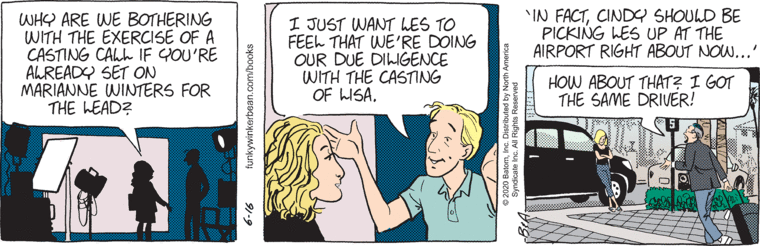 So Mason is insisting on holding a phony casting call just to assure Les that he’s putting every available resource into finding the perfect Lisa, even though he’s already decided who’ll play her? So they’re going to waste thousands of dollars and everyone’s valuable time just to put the smug bearded dick with ears at ease? BatHam’s insane “inside Hollywood” fantasies are spiraling out of control again. This is the most laughable cancer movie premise yet and they haven’t even settled on the cast yet. For anyone else setting your story on the set of a Hollywood movie would have all sorts of potential, but just like with Starbuck Jones he instead opts to focus on the most mundane aspects, like picking up a guy who’ll be sitting in during casting. Yet another fanciful sub-universe full of lore, characters and lingo where absolutely nothing ever happens. Sigh.