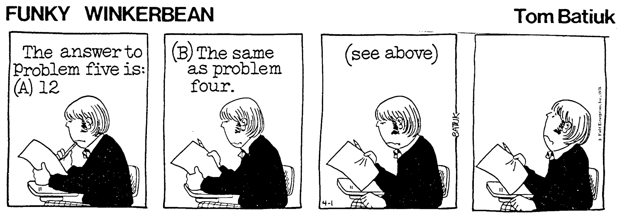 May 28, 2017. A Sunday Strip where Logan takes a test. A call back to Batiuk’s numerous test gags of the past.