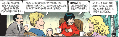 This Sunday strip is, I guess, supposed to be ironic. Jessica still doesn’t know the kind of man her father really was. Although Jess had been talking about her John Darling documentary for years at this point.