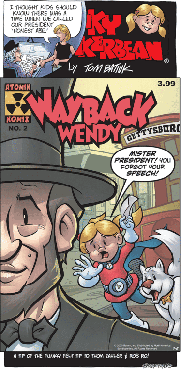 Meta references can certainly work, but are not inherently interesting or funny, nor are they funny in the context of this strip and story arc, or in the context of TB’s real life partial retirement for that matter. What is funny, however, is that Ruby joined Atomik Komix over 3 years ago to much fanfare, specifically to draw Wayback Wendy I might add, and she’s peacing out after drawing the cover of issue #4! And we all thought Phil Holt was a slow worker…
