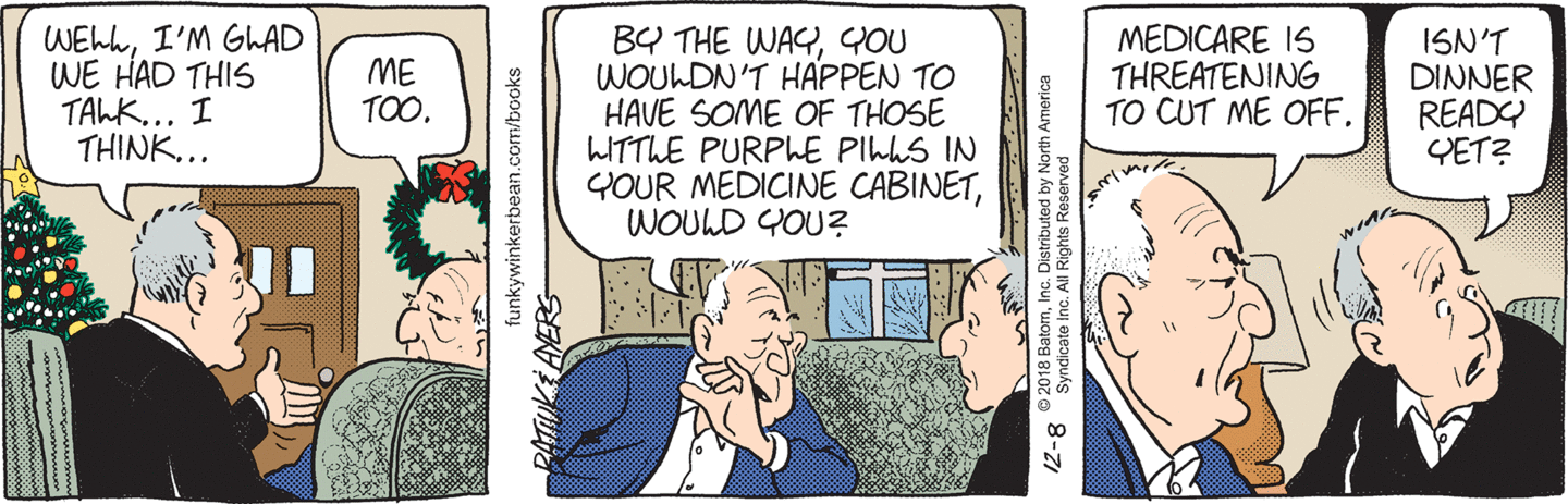 So Young Harry, who was completely baffled by the concept of “comic book store”, can think of nothing more important to ask his future self than “does my mom throw away all my comic books?”. And Old Harry’s response is basically “no, but your wife does, because wives are just like moms, basically, making you get rid of what really brings you joy”.