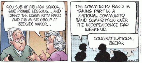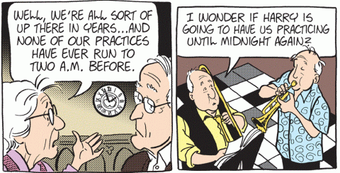 And now we have today’s strip. 5.) An elderly music group member has the idea to crowdfund online rather than try to sell more candy.