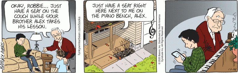 It used to be that every third or fourth Funky Winkerbean strip would end with some character staring glumly out at the audience, letting you know that THEY were playing the suffering straight man to whatever dumb thing the other character had just said or done. But there was usually a weird resignation to the stare. Like the staring character also acknowledged that by engaging with the zany character earlier, they had brought this upon themselves.