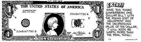 Batiuk is repeatedly guilty of recontextualizing his own past to suit the narrative of the now. I found some old puff piece newspaper articles that just plain don’t make sense after reading the first few years of Funky Winkerbean.
