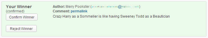 I wish I could be like Oprah and say “You get a mug! And you get a mug! And…” but failing that, I’m happy to announce that our own Merry Pookster wins the coveted mug from the official Funky Winkerbean CafePress store! Thanks to everyone who commented!