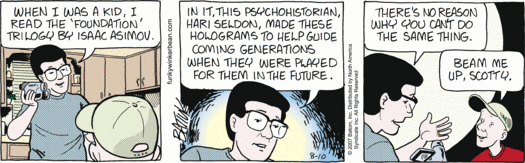 • And extra special thanks go out to Crazy Harry, who demanded nothing but 18 panels of our precious time in return for his brilliant idea of pretending Isaac Asimov invented the concept of recording video using already obsolete technology.