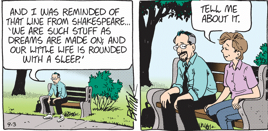 In case you missed it, we are in the final weeks of Funky Winkerbean. Tom Batiuk appears to be reluctantly retiring the strip much in the same way he’s written Ruby as reluctantly retiring from Atomik Komix this week and in today’s strip. The timing of this thin gruel of a story arc and TB’s fairly muted announcement is certainly no coincidence. Most all of us here at SOSF, despite speculating for over a decade on when and how this thing would end, are probably still processing the suddenness of the announcement, how soon it will become reality, and what that means for this wonderful community going forward.