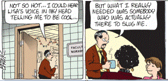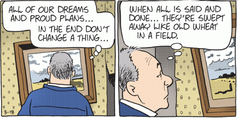 But enough wallowing about, let’s leave that to the strip and try to get back to business as usual. I guess today’s strip is aiming for bittersweet, but it largely is coming across as just bitter. You can’t mask your true feelings in a wall of smirks, TB… And even if the strip wasn’t ending at the close of this year, I’m guessing we were never going to see Chester meet with the building manager by looking in a mirror anyways. I’d say “a pity”, but, you know, it’s not. It’s really not.