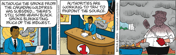 The strips re-ran almost a year later, but were also reworded to remove references to the Canadian wildfires, making them “midwestern” instead. Here was the original strip I posted at the time: