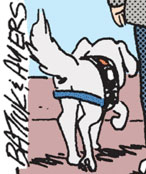 Since this story’s moving at such a slack pace, let’s pick apart the draughtsmanship. Ayers has always been a better cartoonist than Batiuk, But like Burchett (where’s he been, anyway?) I get the feeling he has to dumb down his style for Funky Winkerbean. Note the hirsute zombie in panel 1, and panel 2 Buddy’s deformed, mismatched legs.
