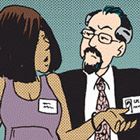 Forget about the wacky plot development in today’s strip, which one commenter gave away a couple days ago and which most of you have seen coming…will ya check out the look that Les is giving his wife in panel 2? Daggers. Do you suppose that Lisa, even at her smirkiest, was even once on the receiving end of such a look from Les? Cayla clearly does not know her place. Which, come to think of it, is probably over at the Big Walnut Tech reunion.