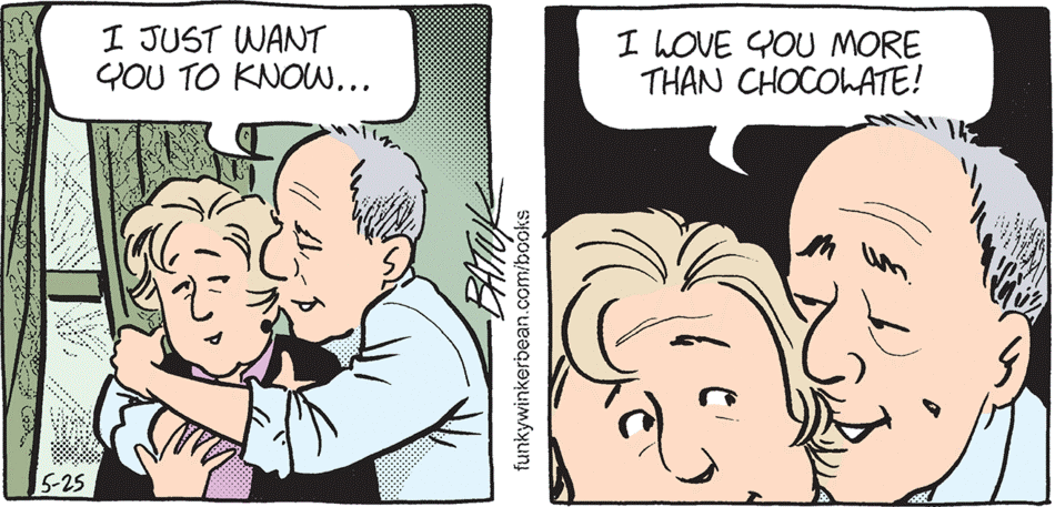 Batiuk does like to have his characters drinking something in strip. Making and offering each other drinks. Coffee usually, sometimes cold beverages, occasionally tea. I’m guessing it gives them a little something to do at in the panel rather than stare at each other seemingly motionless blathering inane dialogue. And I get it. My parent’s marriage entirely revolves around drinking coffee in proximity to each other.