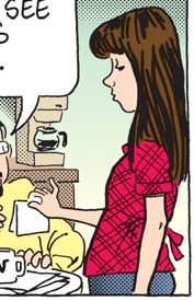 What should be an awkward, regretful farewell turns into another smirkfest. Les looks more than a little creepy in panel 3; he’s smirking so hard he resembles a bespectacled Jack Nicholson. Les looks like he’s about to bend Susan over a desk.
